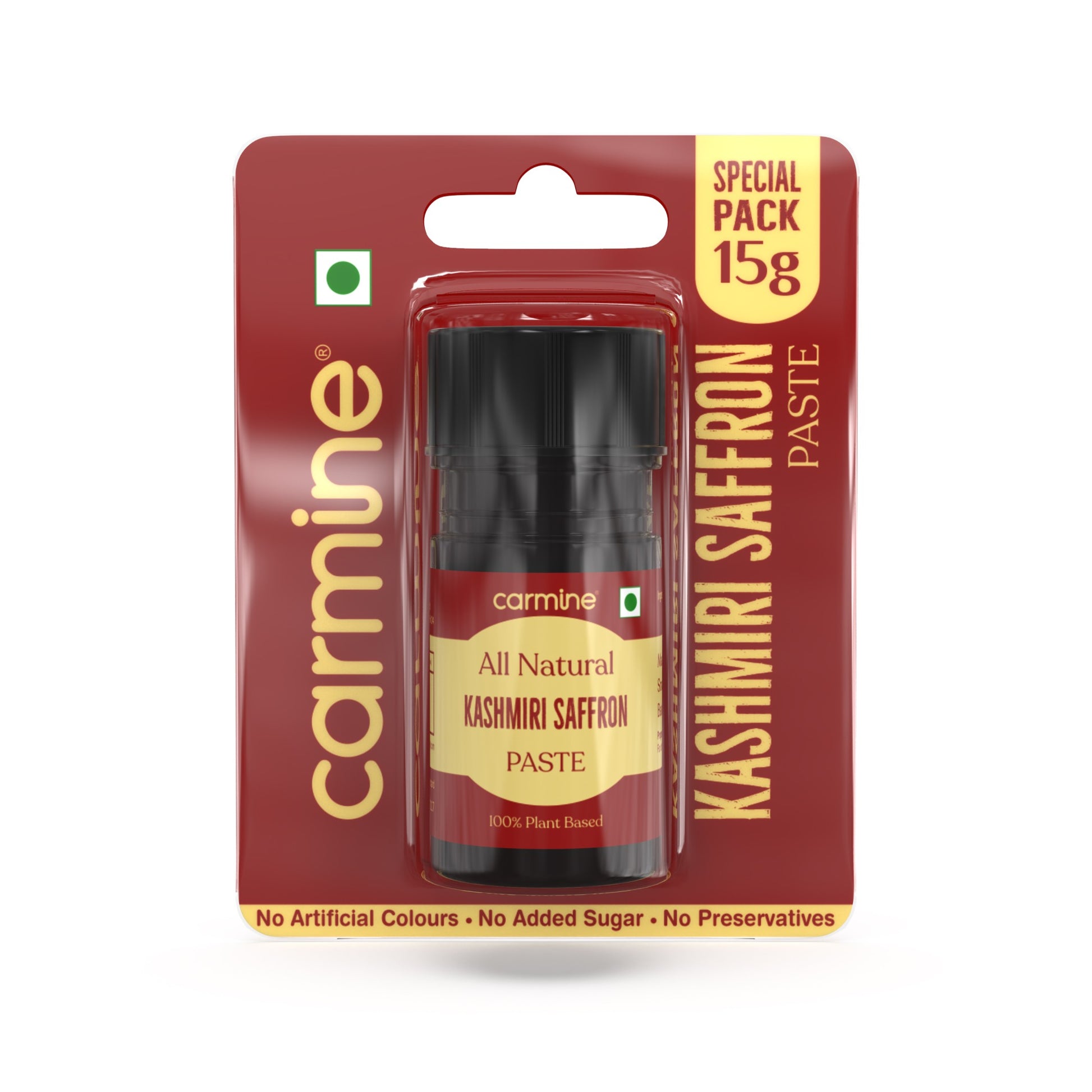 Carmine County brings to you the choicest of natural Kashmiri saffron mongra threads in the form of a paste which contains the concentrated flavor of natural saffron. Our Saffron Paste is 100% natural and does not contain alcohol/chemicals, added preservatives or additives.