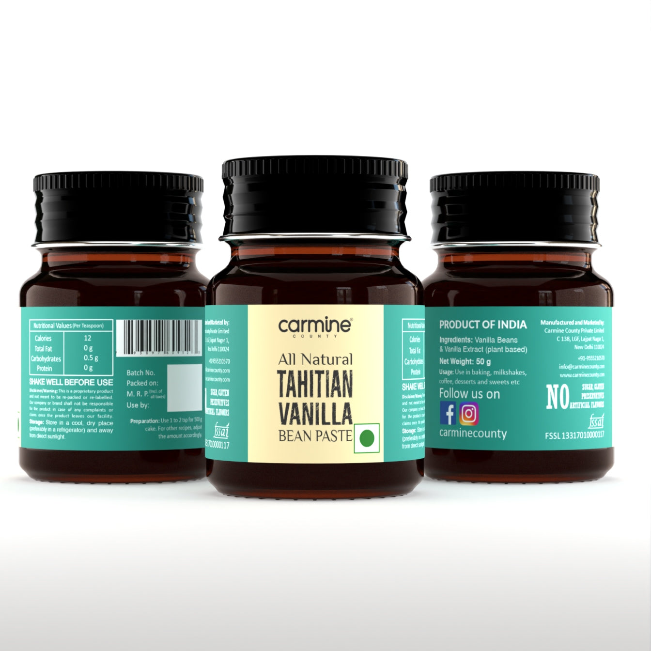 Carmine County brings to you the choicest of natural Tahitian vanilla beans in the form of a paste which contains the flavor of Natural Vanilla Beans from Tahiti (an island in French Polynesia). Our vanilla bean paste is 100% Natural and does not contain alcohol/chemicals or added preservatives.
