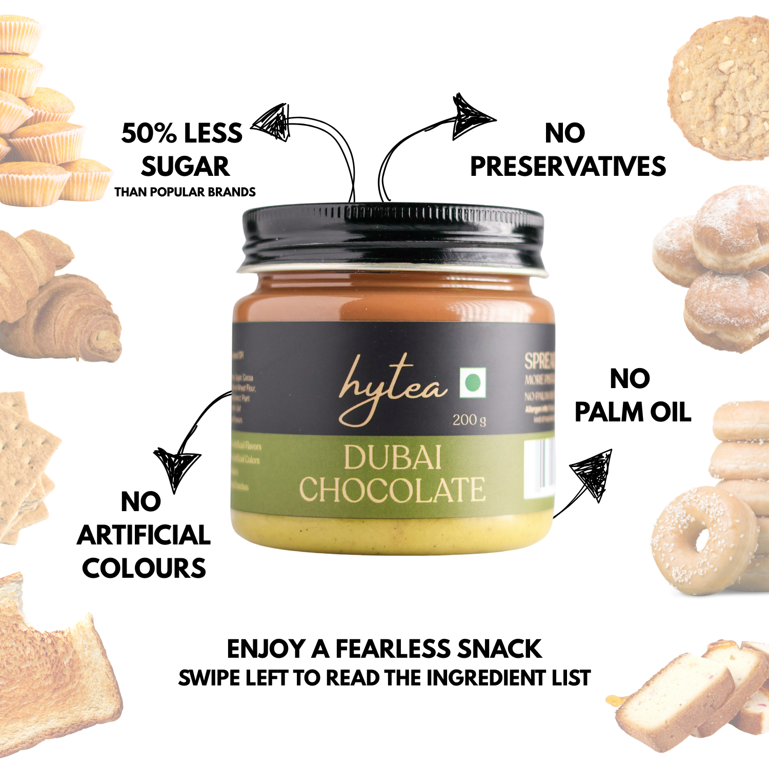 Hytea Dubai Chocolate | Luxe Spread with Premium Nuts, Real Cocoa & Clean Ingredients 200g