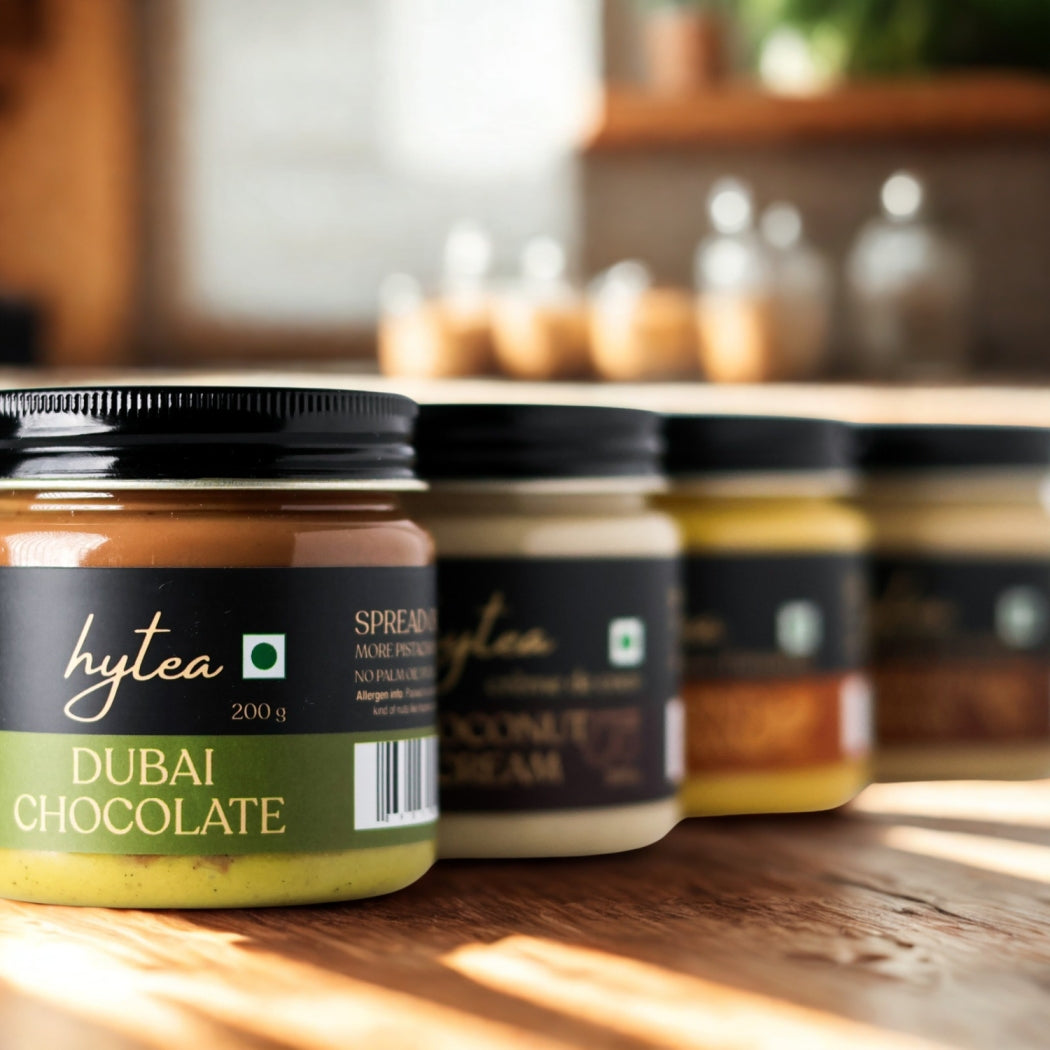 Step into a world of rich, indulgent flavor with Hytea Dubai Chocolate Spread — a clean-label creation inspired by the luxurious taste profiles of the Middle East. Made with premium cocoa butter, carefully selected nuts, real milk, vanilla, and a light sweetness, this spread delivers deep chocolate flavor without compromise. No preservatives or synthetic additives — just pure decadence with a clean conscience.