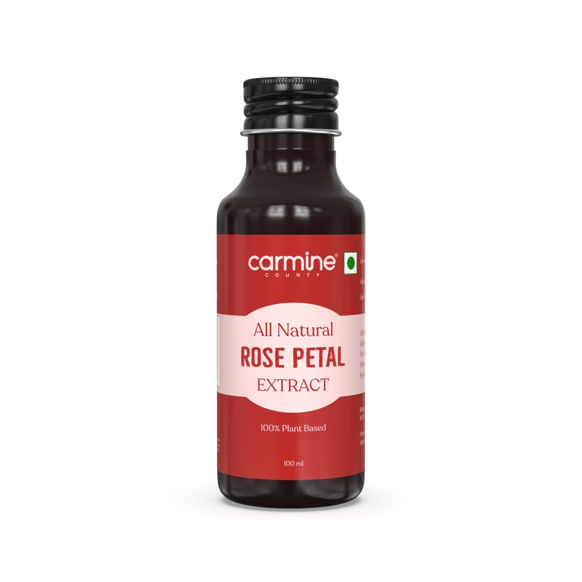 Carmine County brings to you the goodness of natural rose petals in the form of a liquid extract, every drop of which contains the true flavor of Natural Kashmiri Rose Petals. Our extract is 100% natural and does not contain alcohol/chemicals or added preservatives.