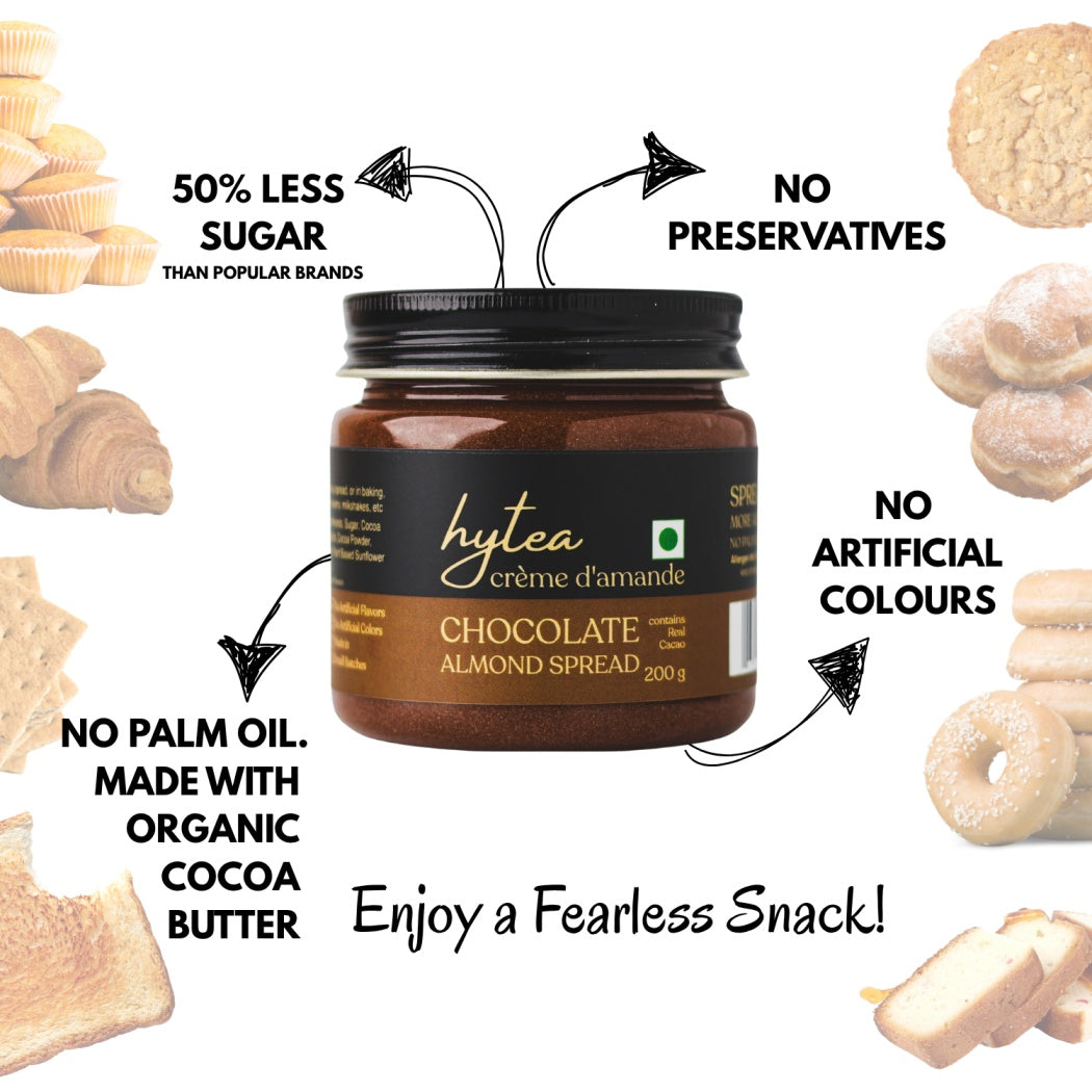 Hytea Chocolate Almond Cream Spread 200 g, Made with Pure Cocoa Butter