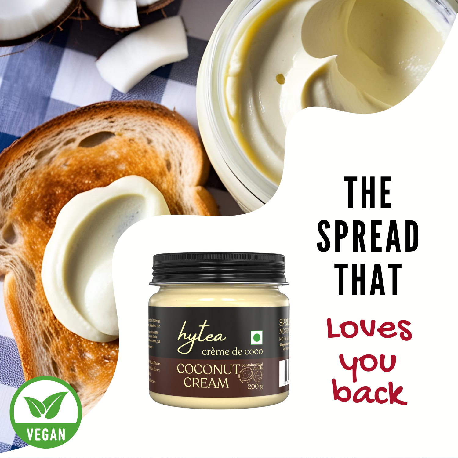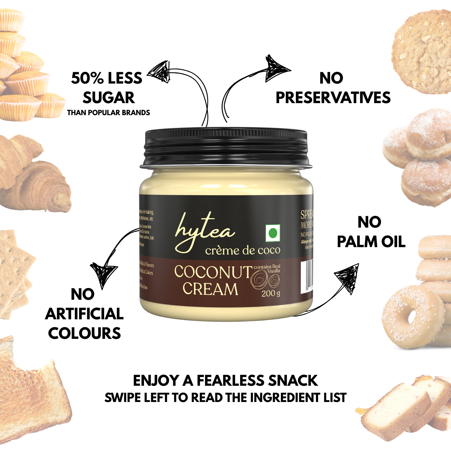 Escape to tropical indulgence with Hytea Vegan Coconut Cream — a clean-label, plant-based spread made with real coconut, cocoa butter, and natural vanilla. 100% dairy-free and free from preservatives, this creamy delight is smooth, lightly sweetened, and perfectly balanced with a hint of salt. Whether you’re vegan or just looking for a delicious plant-based option, this spread brings freshness, simplicity, and satisfaction to every bite.