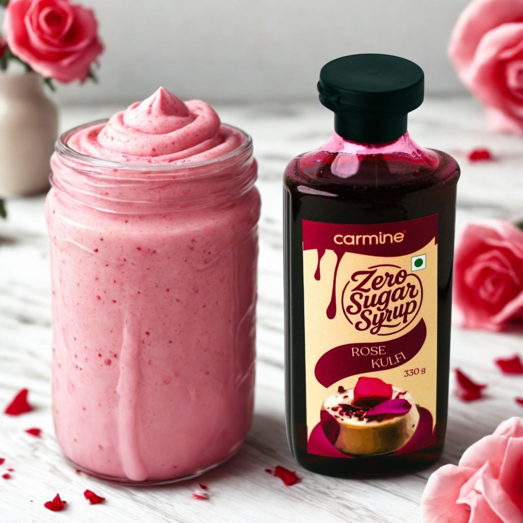 Zero Sugar Rose Kulfi Syrup - Natural, Plant-Based, Sweetened with Pure Monk Fruit, Clean Label Indian Dessert Syrup, 330 g